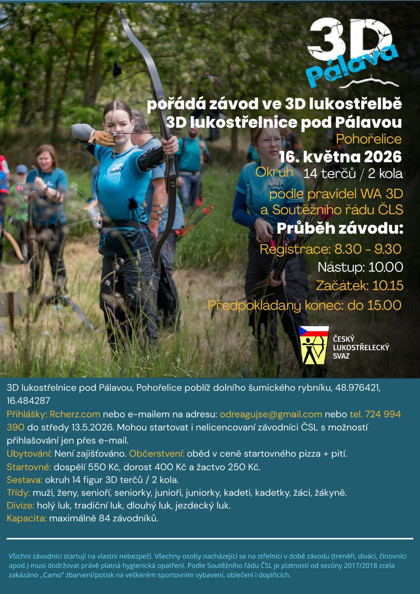 Dalibor Peška obhájil titul Mistra ČR v kategorii longbow muži. Zuzana Pešková si vystřílela 2. místo v kategorii tradiční luk ženy. Hostující Marcel Skalický z klubu ŠAKAL Morava obsadil 4. místo v kategorii tradiční luk muži. Pálavský mix tým tradičních luků ve složení Zuzka a Marcel vybojoval 3. místo. Gratulujeme!